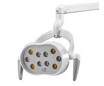 • 三模式10珠 LED 感应灯 白光模式:色温可调,照度感应式无极调节,满足不同医生操作习惯;光固化模式:可感应切换黄光,防止树脂过快固化,操作时间更充裕;混合模式:光线更柔和,有效保护患者和医生眼睛